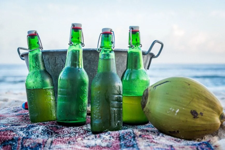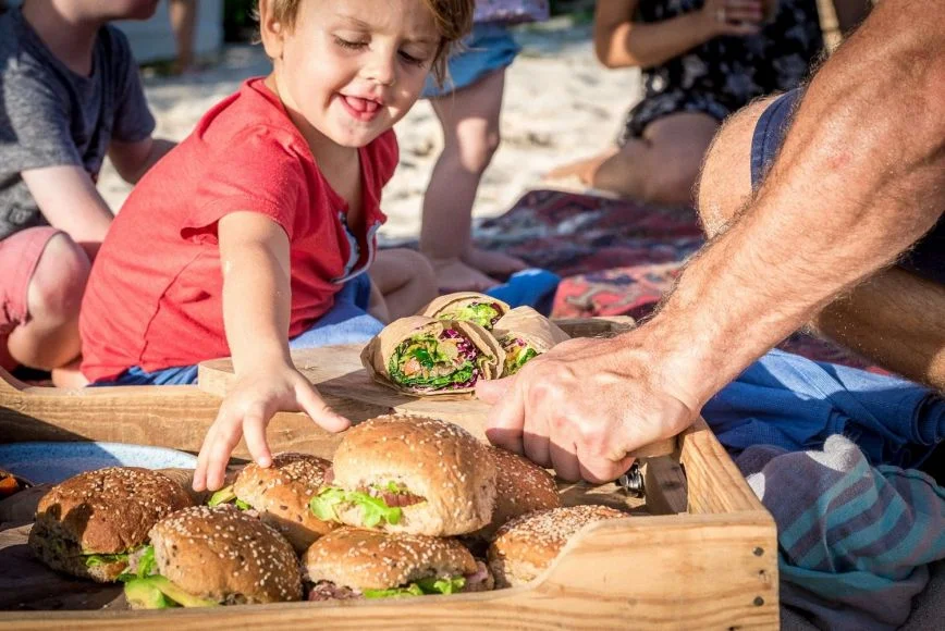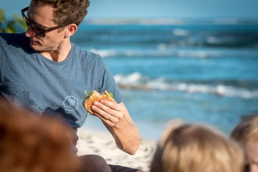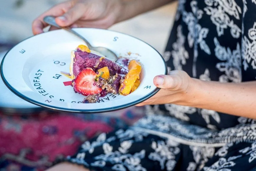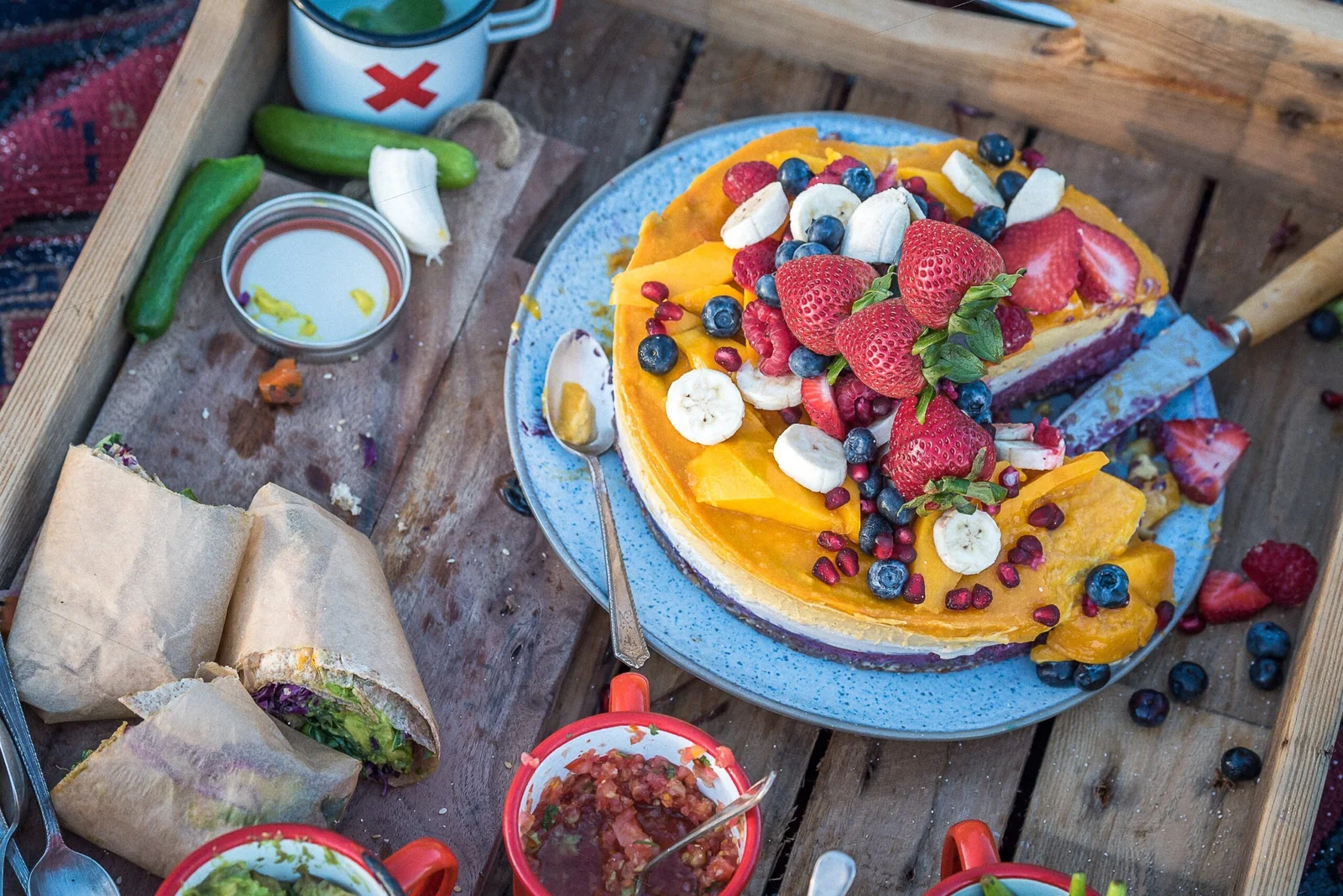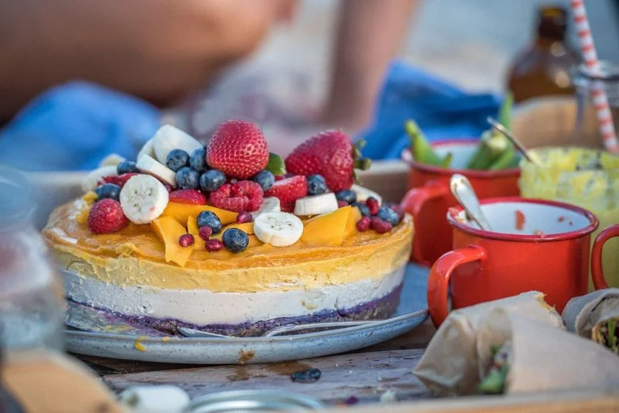 I think coming to an island it would be crazy not to appreciate the amazing natural beauty of it – the blue ocean waters, golden sands and palms. Jess and I have always been drawn to be near the ocean. We have lived and traveled in different parts of the world but always love coming back to the comfort and simplicity of the sea and sand. What better way to celebrate this by taking some pals down to the beach for a picnic! Pack up a basket and cooler and spend time celebrating friends and family, keeping it close to nature and strengthening the bonds that really matter. Jessie loves picnics and we really should do them more often come to think of it. Keep it simple and prepare food and drink that is easy to assemble and not too fiddly. Kombucha is a great healthy alternative to regular fizzy drinks or even champagne and Jess has been brewing it since before we opened the store, favouring loose leaf white teas paired with fruity rooibos ones for both the health benefits and lighter flavour which goes with just about anything, so if you can find room next to the beers in the cooler, go for it! Wraps are a great idea and Jessie makes them in advance, wraps them in paper and cuts in half when we serve as an easy quick way to get people munching down! We went a bit above and beyond on this day and celebrated the afternoon with one of Jessie’s vegan nice cream cakes and really it was heaven in a heavenly setting! Most important things is keep it simple and get out there and connect with nature and the people you love!